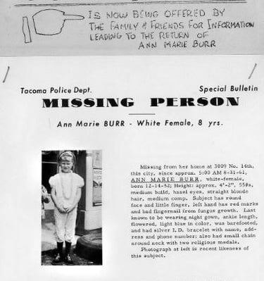 In 1961, Ann Marie Burr was just 8 years old. She had hazel eyes, blonde hair, and stood slightly above 4 feet tall. She studied piano and her parents described her as both artistic and intelligent. She was also pretty independent and regularly walked several blocks to school alone.